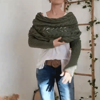 Ez egy sál? Egy váll táska? Van rajta ujja? Ez mindegyik! A kábelmintás pulóver sál alapvetően egy hatalmas, túlméretezett csipkés sál, amelynek mindkét végén ujjak vannak. A varázs? Hogyan viseld. Ezt a darabot különböző módokon viselheted, és minden módon lenyűgöző, elegáns megjelenést biztosít.